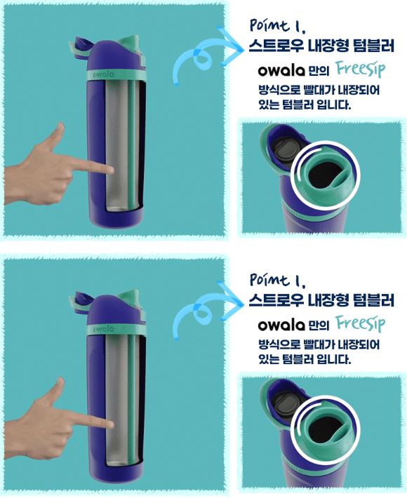 오왈 프리십 텀블러의 장점 중 하나인 안에 들어있는 빨대는 분리, 조립이 가능해 내부 청소하기에도 수월하며, 음용구 부분이 넓어 얼음을 넣을 때도 편하게 사용할 수 있습니다.