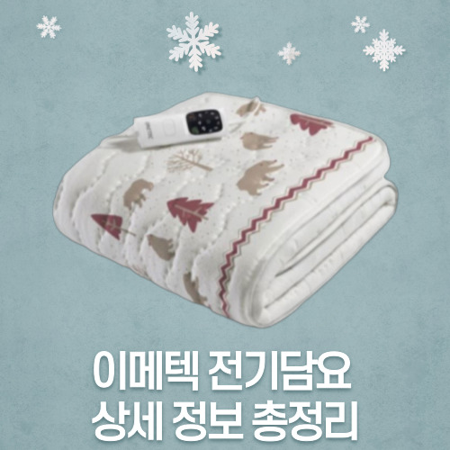 - 이메텍 전기담요에는 많은 장점이 있지만 대표적으로 열이 빠르게 올라와 사용 즉시 따뜻함을 느낄 수 있으며, 다양한 크기와 디자인으로 사용자가 원하는 용도에 맞춰 제품을 선택할 수 있습니다.