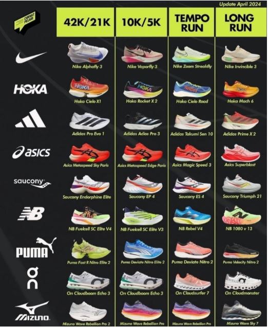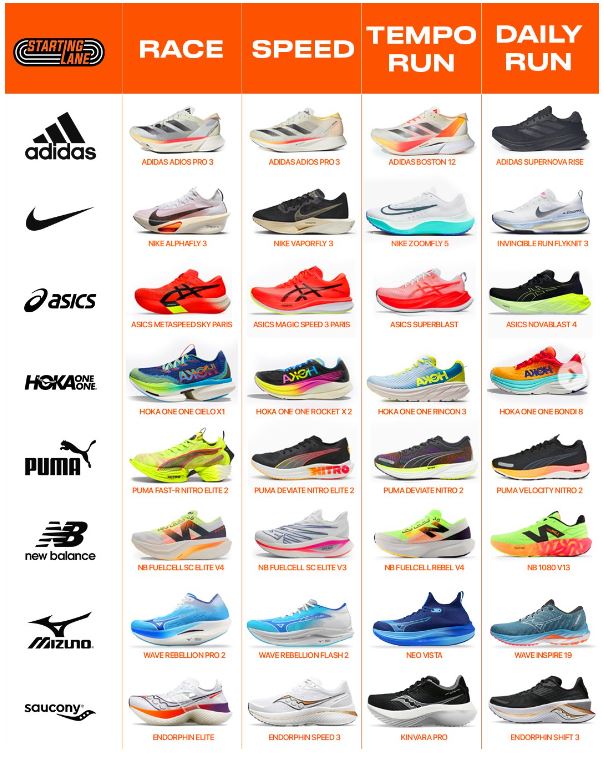런닝화 계급도는 러너들이 자신에게 맞는 런닝화를 선택할 수 있도록 성능, 기술적 특징 등을 등급별로 분류한 표입니다.