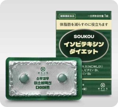 - 이소비텍신과 비타민 B군으로 이 외에도 녹차추출문, 가르시니아감보지아 등 다이어트에 도움을 주는 성분들이 포함되어 있습니다.