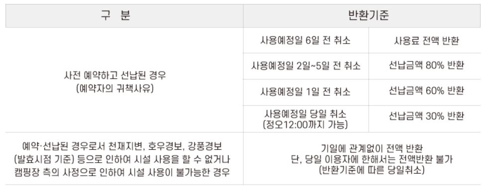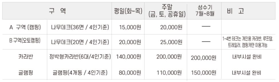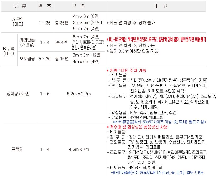 인천 송도 국제캠핑장 이용 및 요금에 대해 상세 정보입니다.