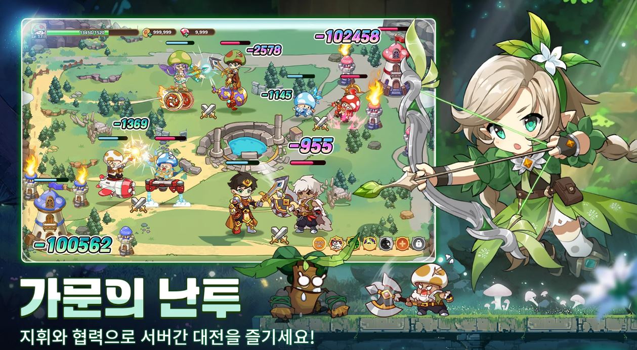 인간의 모습으로 돌아가기 위해 버섯의 몸으로 모험을 떠나는 버섯커키우기는 방치형 무한육성 RPG 게임입니다.