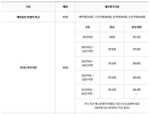 - 정시 모집 : 군인 자녀